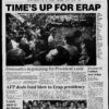 Page One printed on white paper and stored in wood texture frame with glass cover.