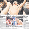 Page One printed on white paper and stored in wood texture frame with glass cover.