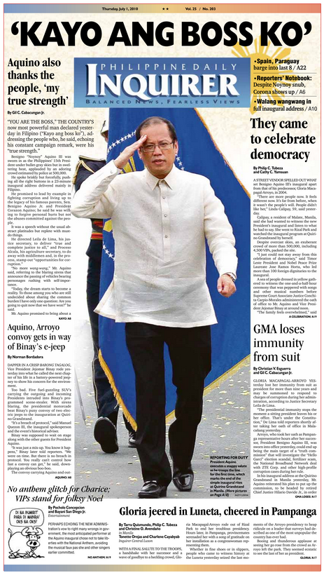 Page One printed on white paper and stored in wood texture frame with glass cover.
